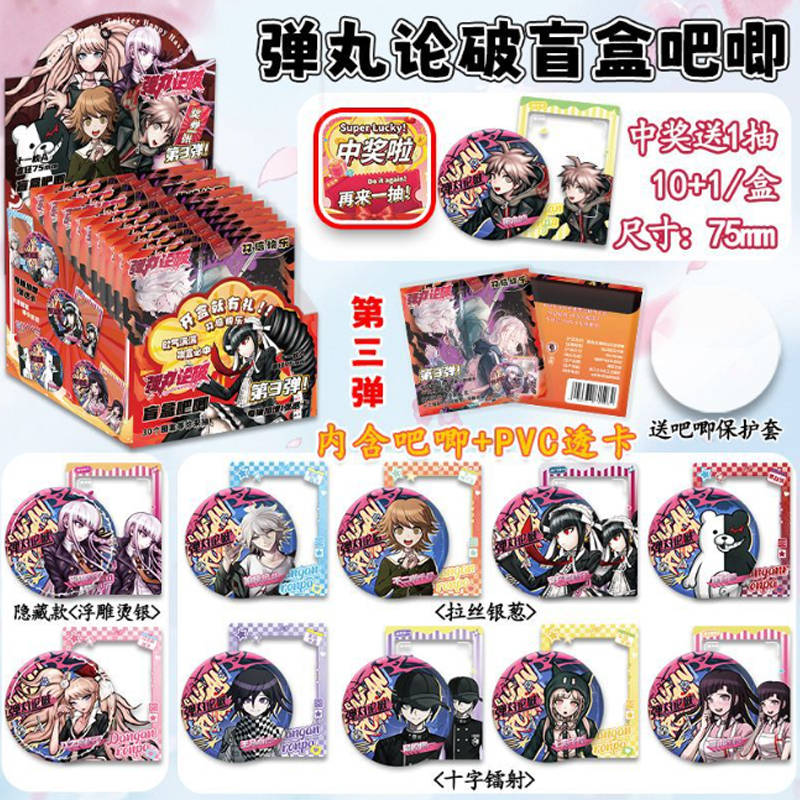 Блок со значками секретами гача (10шт + 1 сюрприз с карточками AR) - (75 мм) Дангаронпа 1