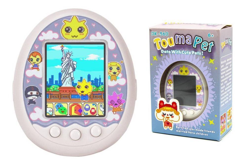 Тамагочи электронный питомец с цветным экраном, большой 7 см, питание 3хAAA (белый)