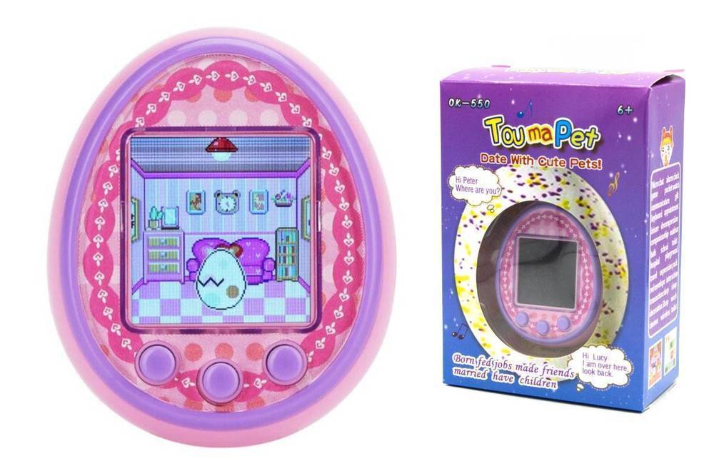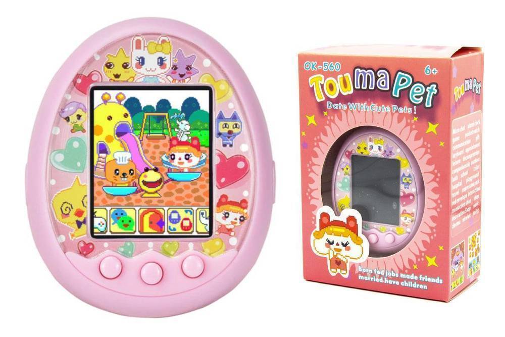 Тамагочи электронный питомец с цветным экраном, большой 7 см, питание 3хAAA (розовый)
