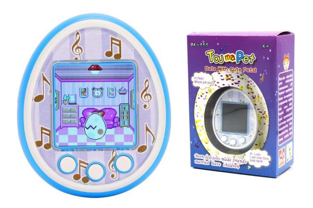 Тамагочи электронный питомец с цветным экраном, стандарт 6 см, питание аккумулятор Type-C (голубой)