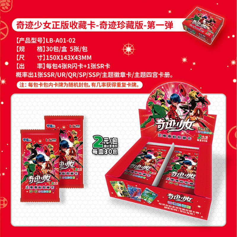 Блок с коллекционными карточками-бустерами Леди баг и Супер кот (30 бустеров, 150 карточек,1 значок)