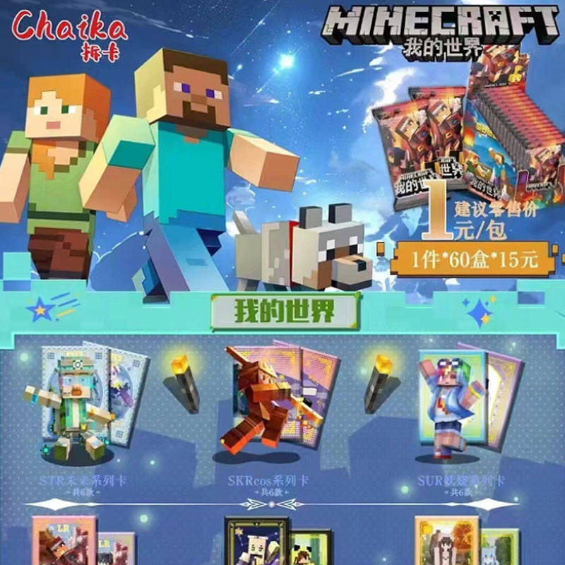 Блок с коллекционными карточками-бустерами MINECRAFT 5 (30 бустеров, 90 карточек)