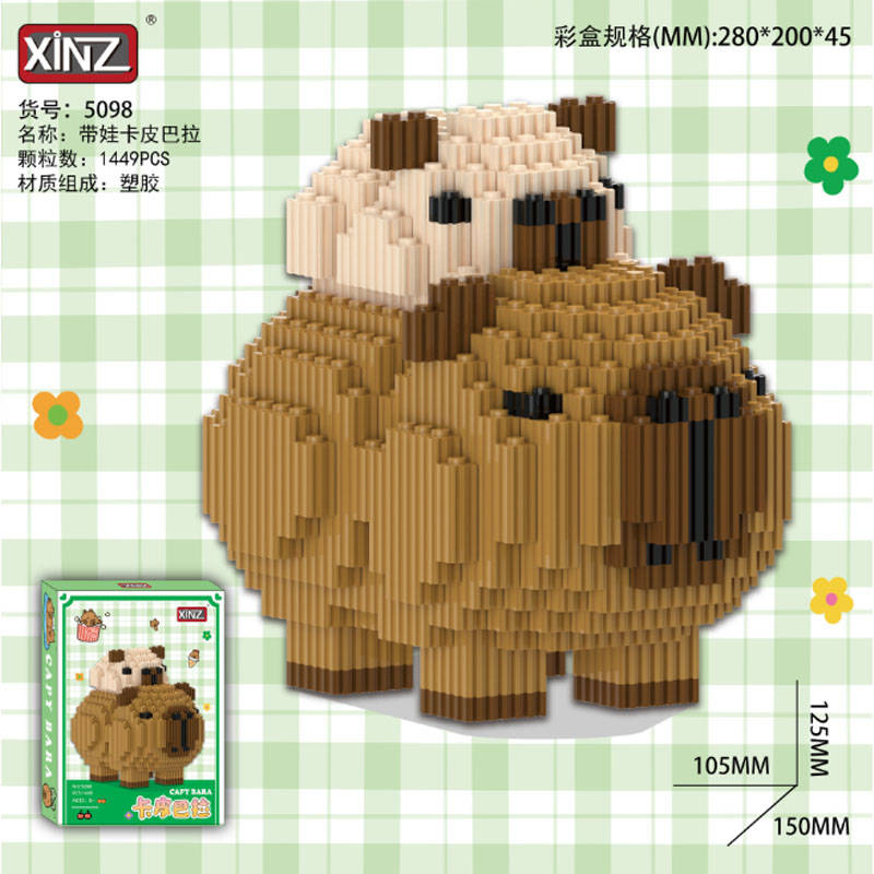 Конструктор из блоков Капибара 3 стоит с малышкой на спине (1449 блока, 12х10х15см) 20220195