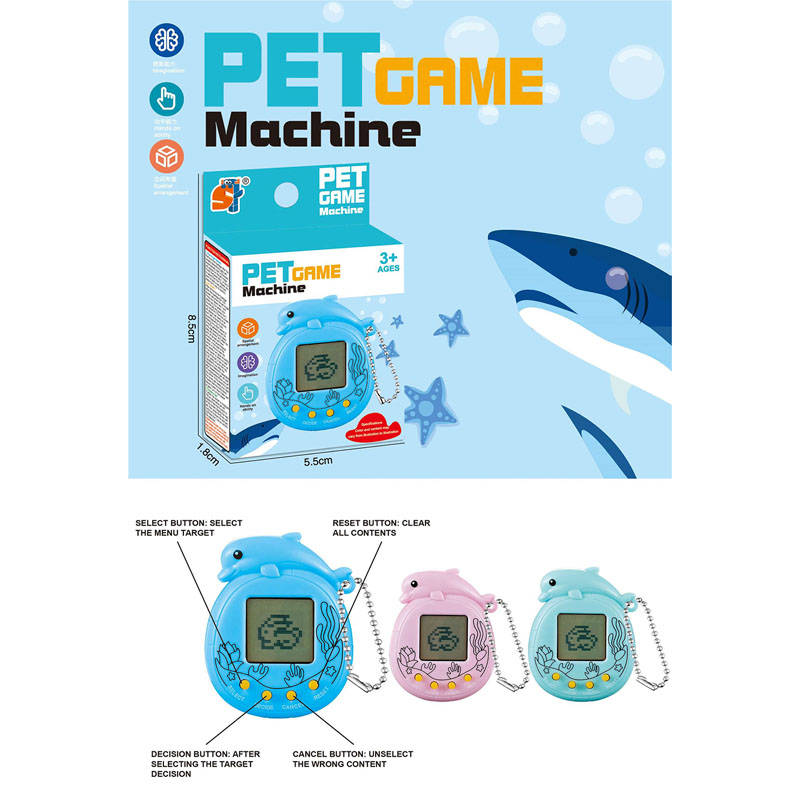 Тамагочи электронный питомец ч/б Акула на цепочке (цвет в ассортименте)