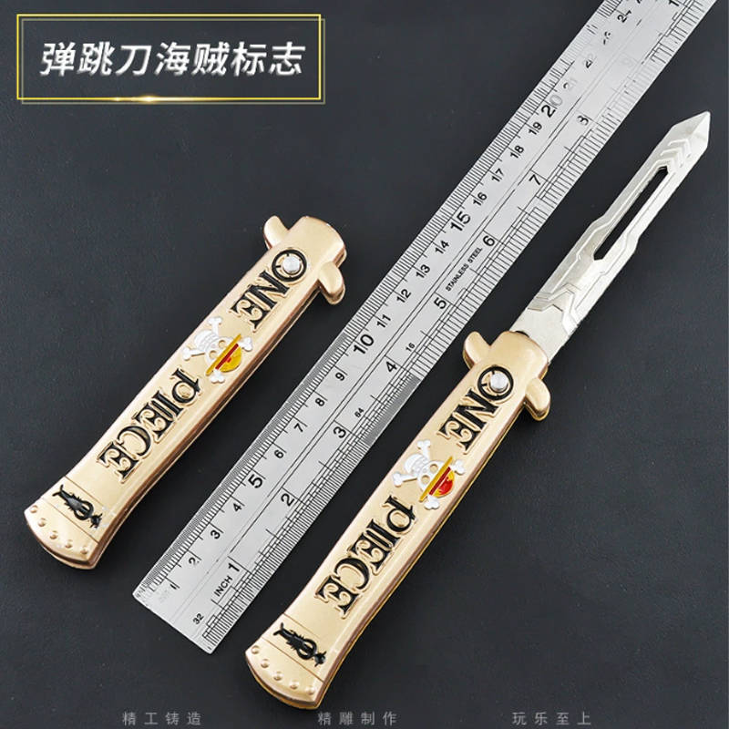 Нож выкидной с кнопкой тренировочный Ван Пис золотой